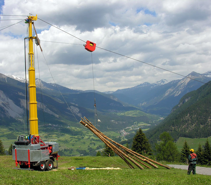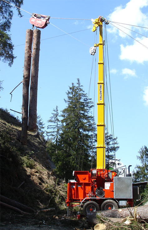 Hauptsächlich in der Endnutzung verwendet, findet dieser Seilkran große Beliebtheit durch seine unzähligen Aufbauvarianten wie zum Beispiel als Anhängerversion, Raupenversion, auf Lkw aufgebaut oder als selbstabstützender Seilkran am Ausleger eines Raupenbaggers ( min. 40 Tonnen) oder an einer Schubraupe montiert.